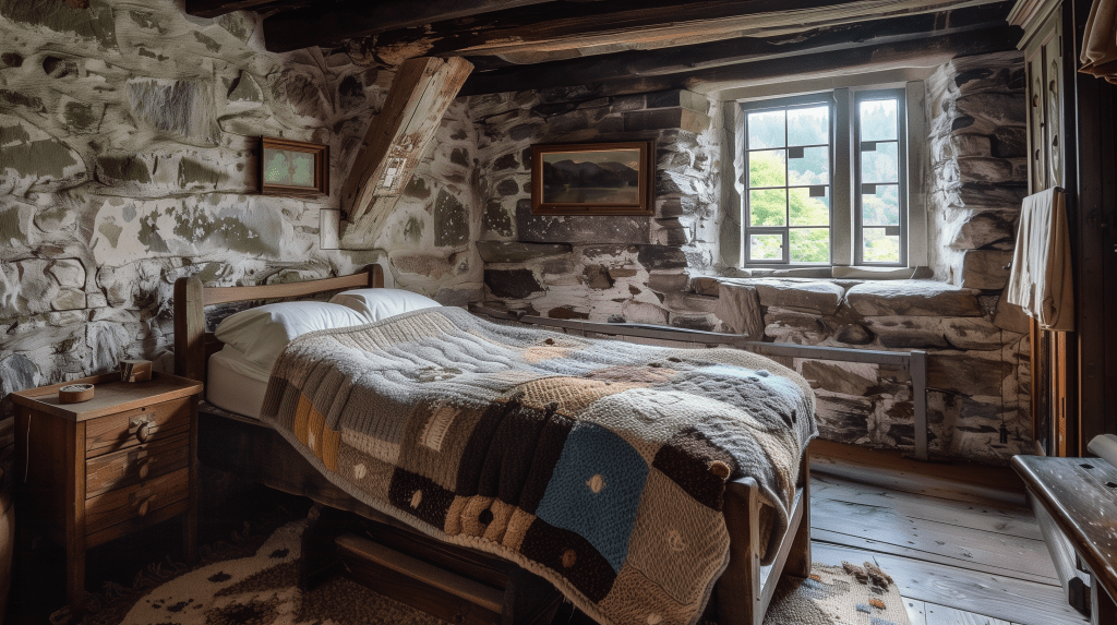 Location: Inside a centuries-old Lake District cottage, with exposed stone walls and wooden beams.