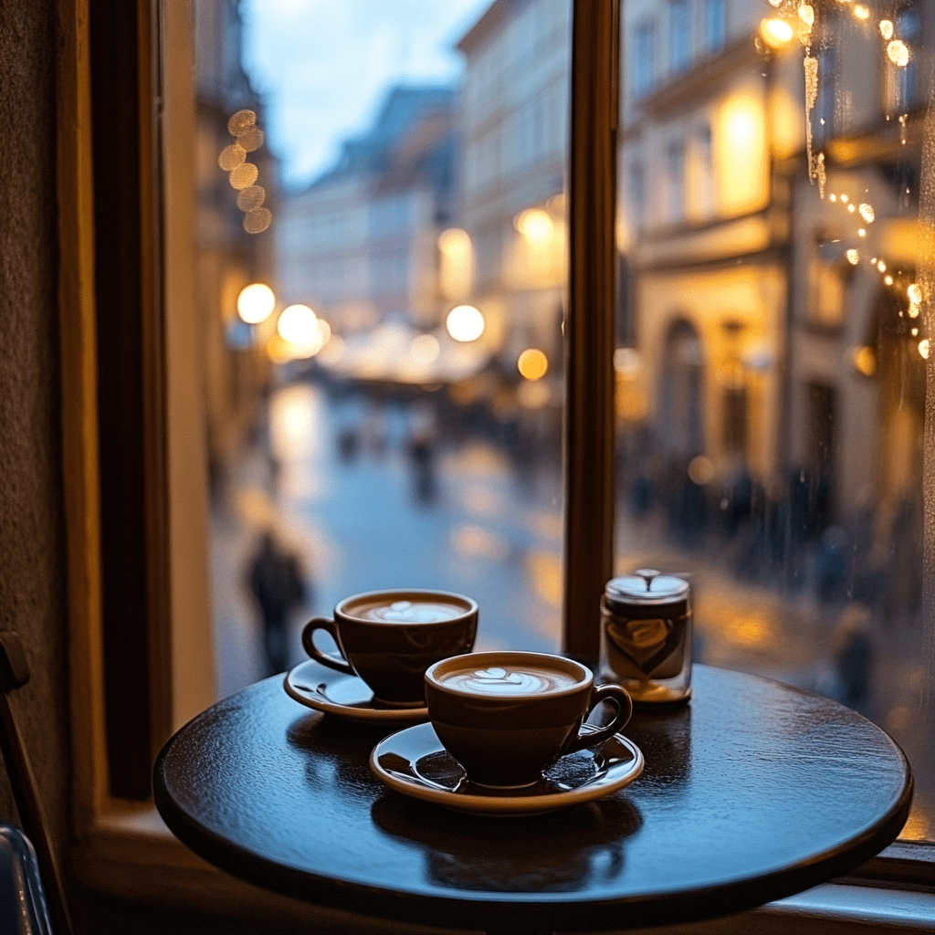 (They stop at a small café and sit down, ordering coffee. The atmosphere is calm and peaceful, a stark contrast to the turmoil of the past.)