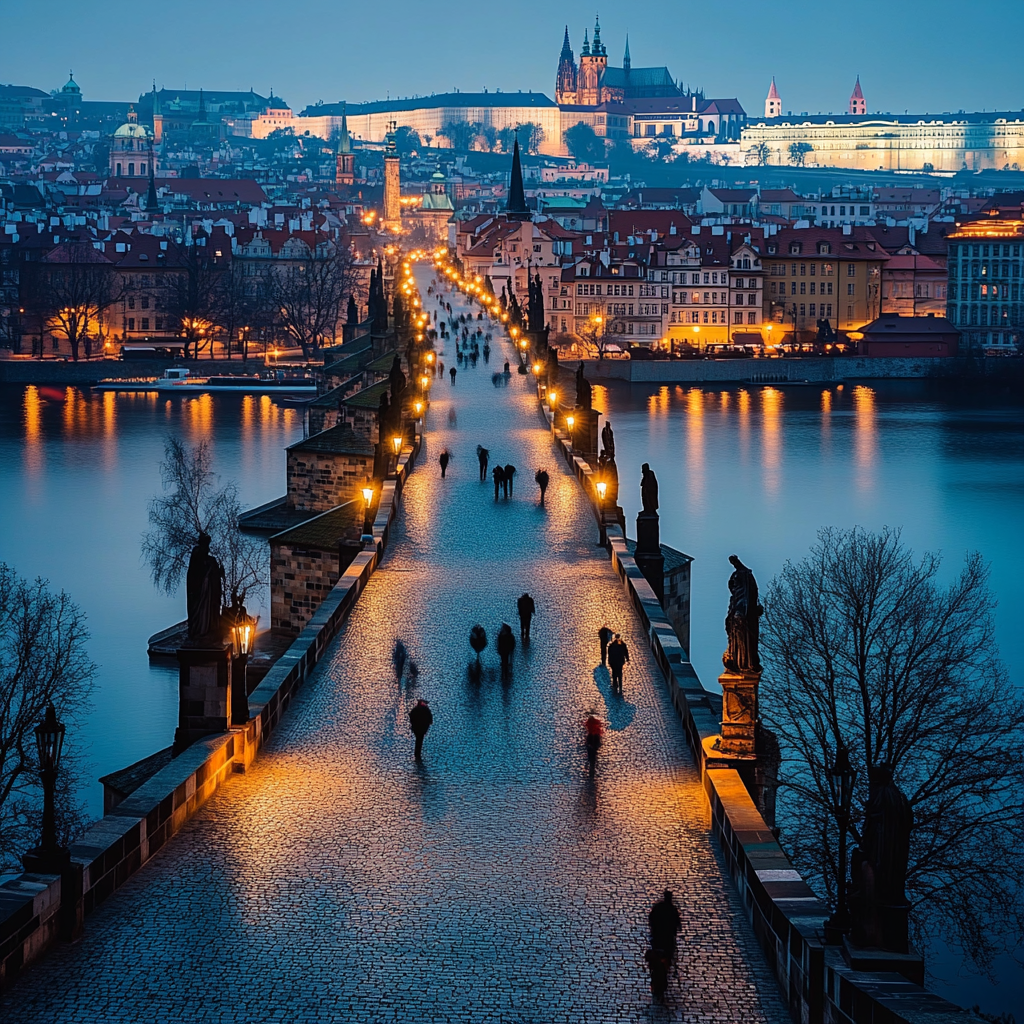 (They reach the end of the bridge and step into the bustling streets of modern Prague. The journey they’ve taken has changed them, and they now carry with them the weight and wisdom of history.)