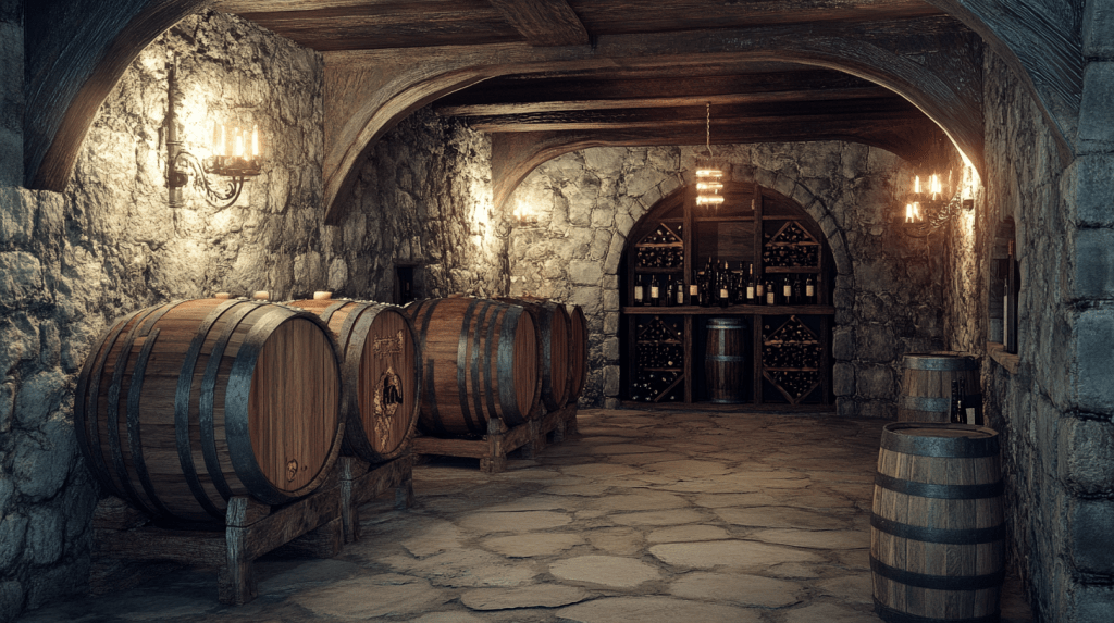 她們跟隨瑪麗亞來到涼爽的酒窖,牆邊整齊排列著大木桶,空氣中彌漫著陳年葡萄酒的香氣。瑪麗亞為她們每人倒了一杯酒,當她們品嘗時,驚嘆於那深厚的風味和每一口中所蘊含的歷史感。