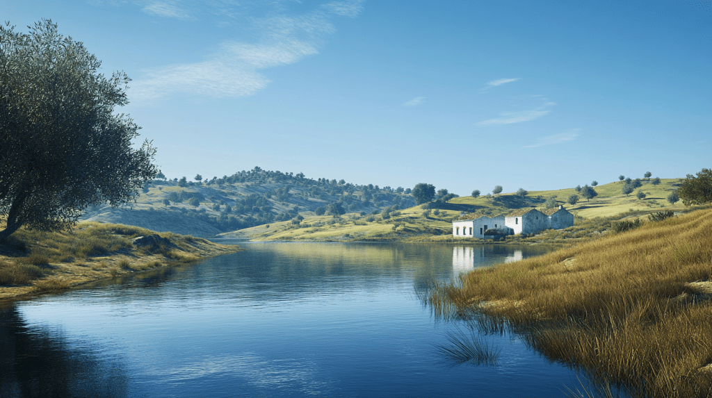 As they drove further south, the landscape began to change. The lush hills and olive groves of Alentejo gave way to the deep valleys and shimmering waters of the Guadiana River, winding its way along the border between Portugal and Spain.