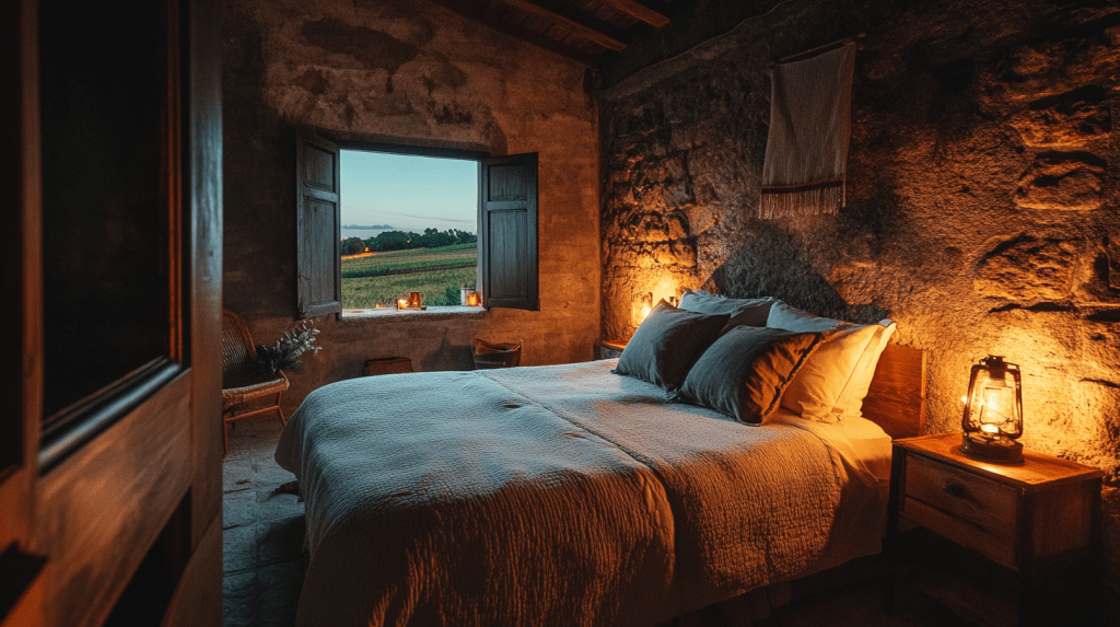 After dinner, Maria, the elderly woman, returned with the news that her cousin was unable to accommodate them. She kindly insisted they stay the night. Grateful for the hospitality, Emily and Sarah accepted the offer. As they settled into the guest room, the soft glow of lanterns illuminated the cozy interior. The stone walls and wooden beams gave the room a rustic charm, and the view from the window stretched across the quiet, moonlit fields.