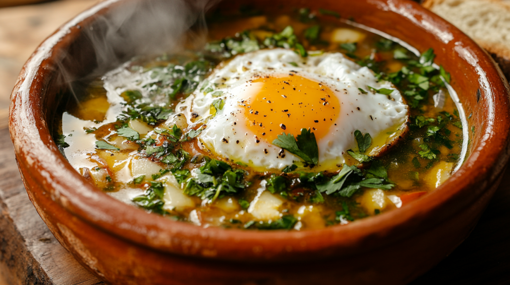 - Açorda – A traditional bread soup with garlic, olive oil, and cilantro, often with poached egg or fish.