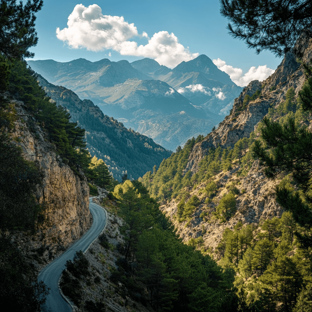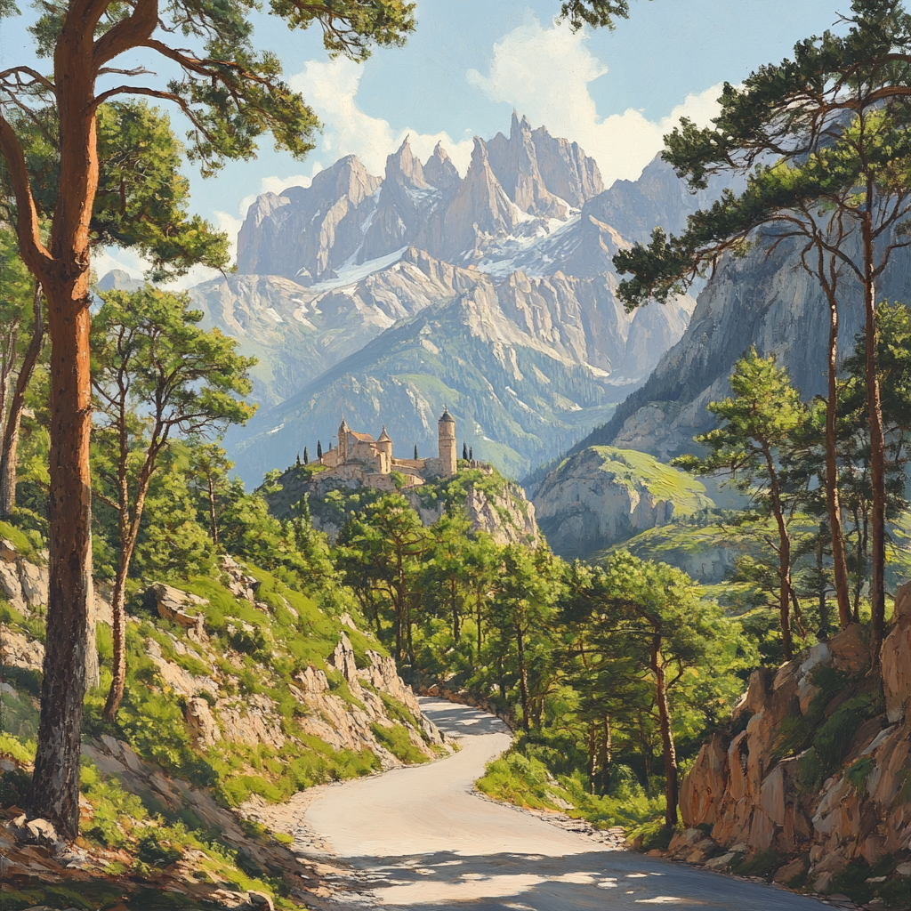 (They drive higher into the mountains, the road becoming steeper and narrower as the Pyrenees rise around them. The air grows cooler, and the landscape shifts from dry plains to lush, green hills.)
