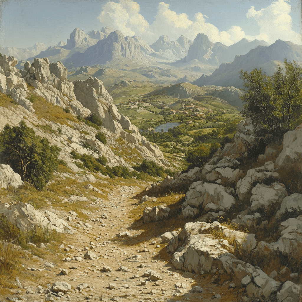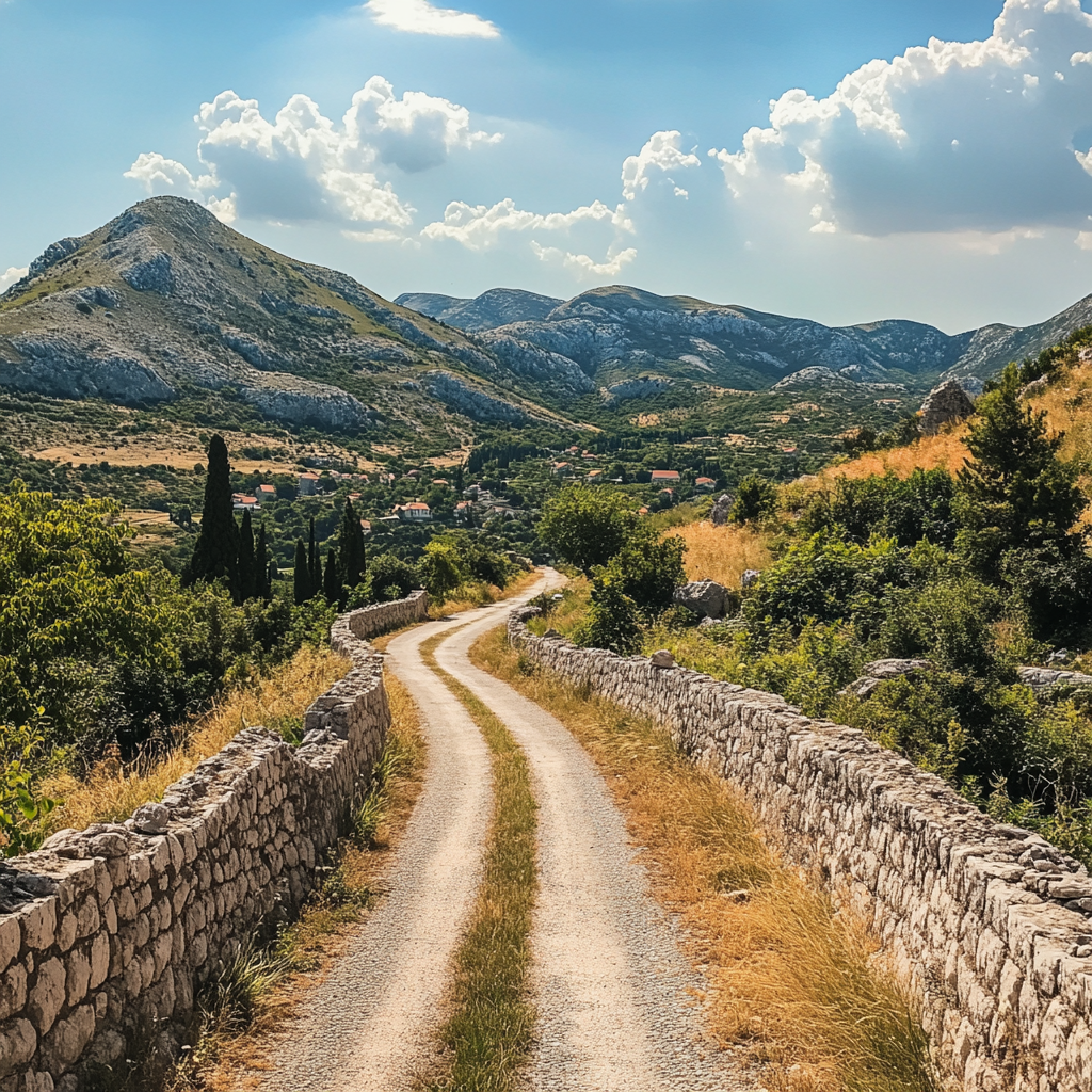 (They drive along a winding road, the Adriatic slowly disappearing in the rearview mirror as tall, imposing mountains rise up ahead. The terrain becomes more rocky, and rivers snake through the valleys below. Small villages dot the landscape, their red-tiled roofs standing out against the gray-green of the mountains.)