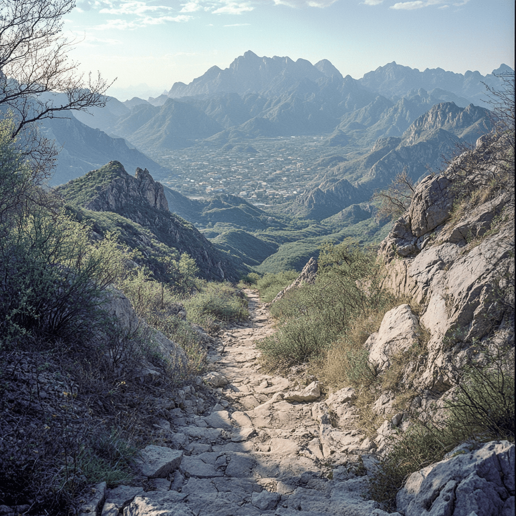 (他們沿著蜿蜒的狹窄道路繼續前行,兩側是陡峭的山坡。小村莊零星分佈在下方的山谷中,道路隨著山脈的輪廓蜿蜒而行。)