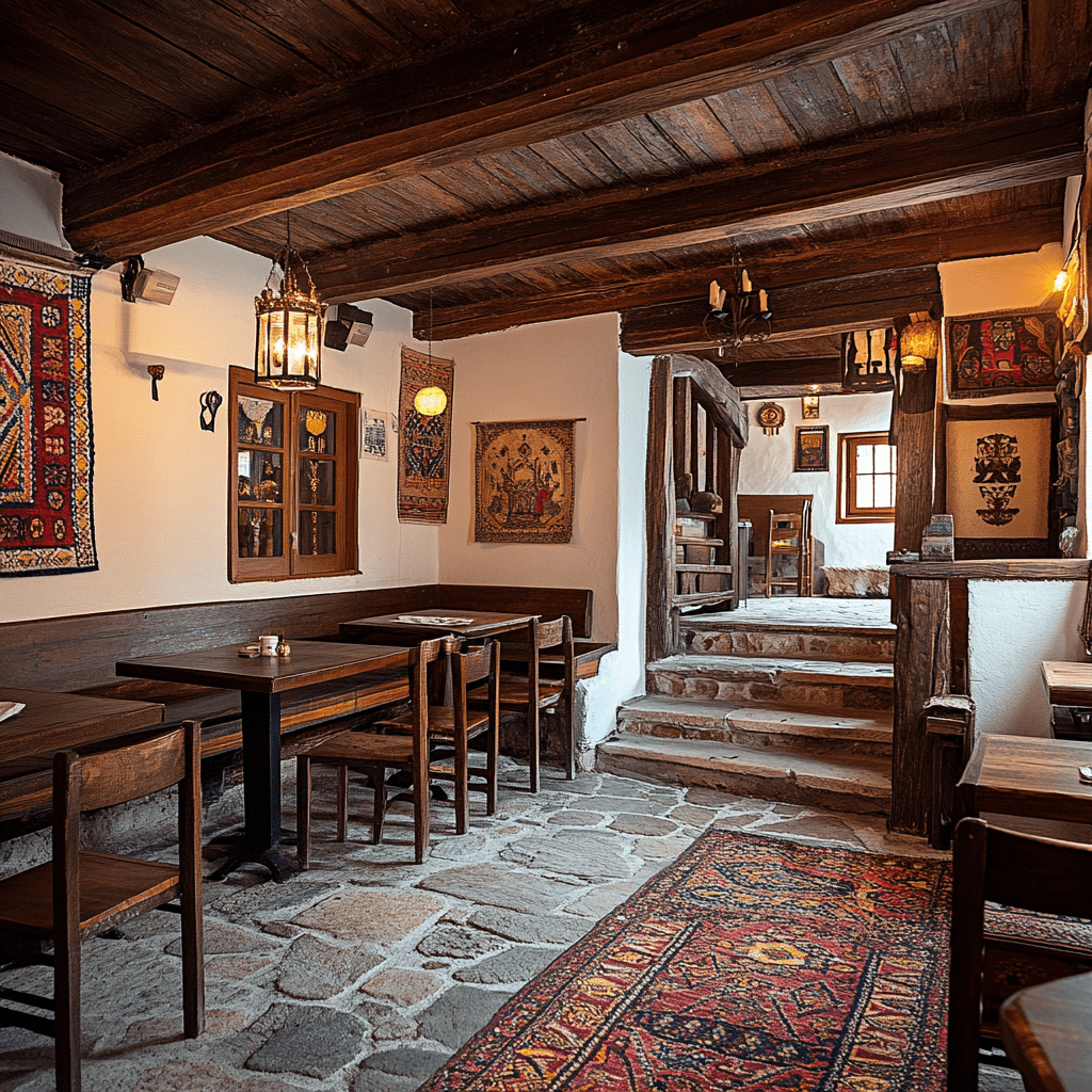 (They enter a cozy, traditional restaurant near the river. The interior is simple but warm, with wooden furniture and an old-world charm. The menu features a mix of local Bosnian dishes, showcasing the Ottoman influence on the cuisine.)