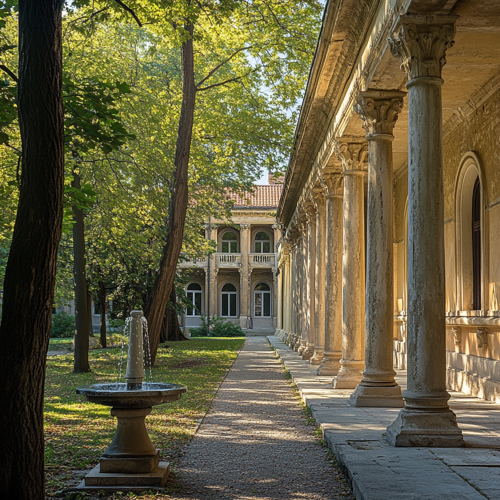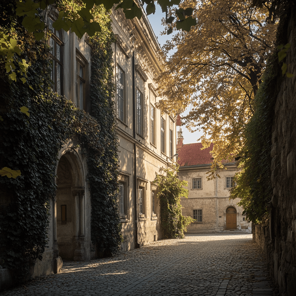 The University of Zagreb, with over 350 years of history, was one of the key academic centers during the Austro-Hungarian Empire. Two scholars have come here to attend a conference, strolling through the historic campus and experiencing the academic atmosphere and cultural heritage of the city.