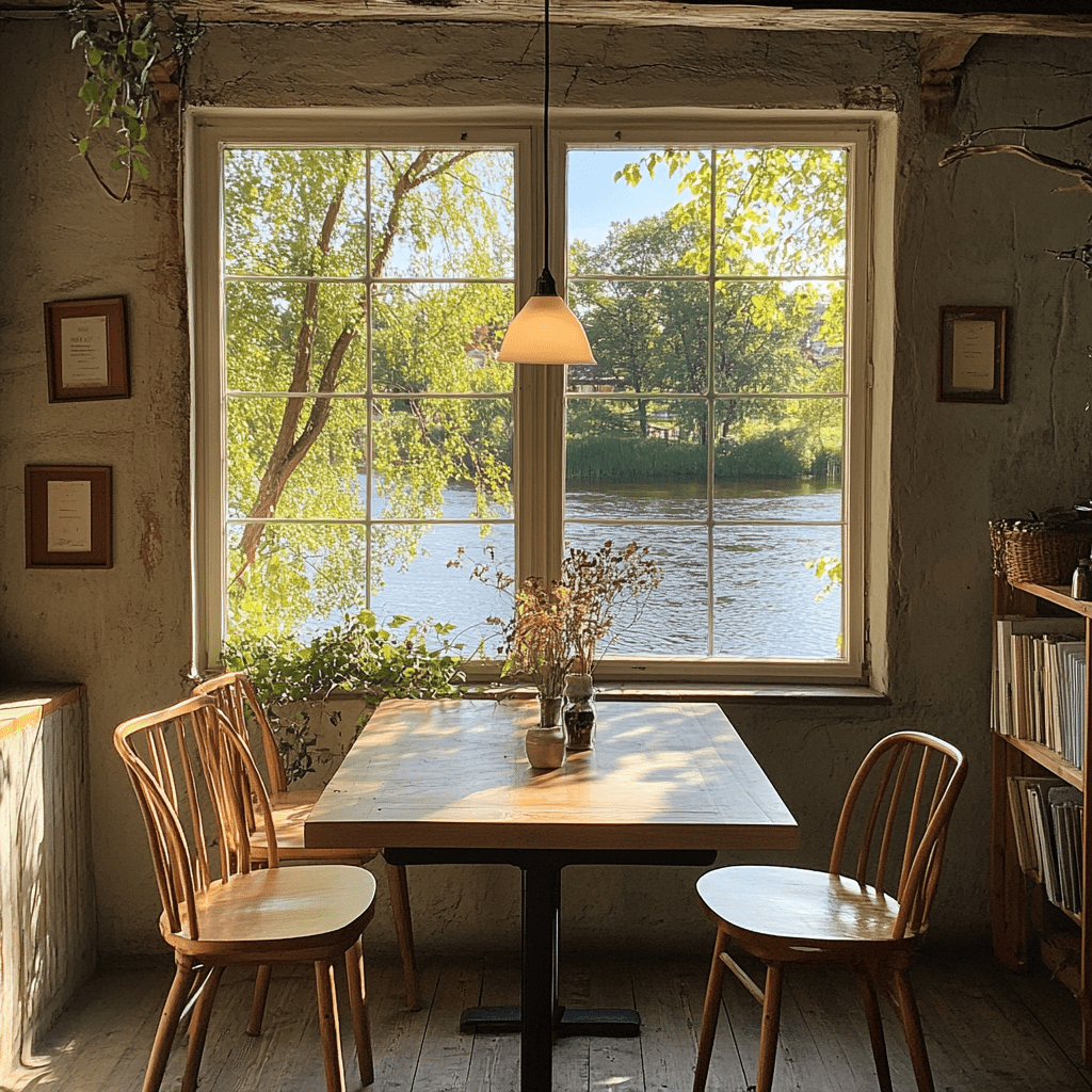 Emma and Julia sit down at a cozy café near the Aura River in Turku, surrounded by the warm, rustic decor typical of Finnish coffeehouses.