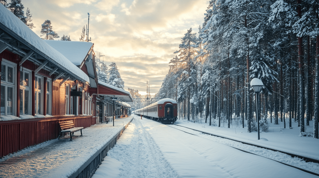 The story begins with Emma arriving in Rovaniemi, the heart of Finnish Lapland. As the train pulls into the station, the snow-covered landscape immediately captures Emma’s attention. Julia is already waiting, wrapped in a thick coat, with a warm smile despite the biting cold.