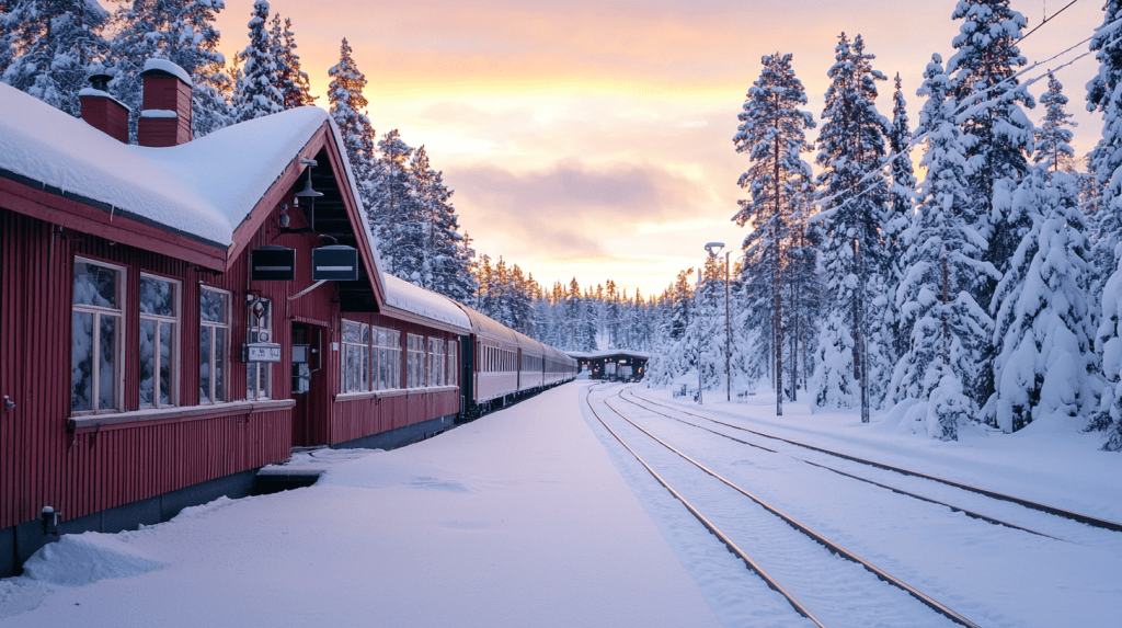 The train slowed as it approached the Rovaniemi station, its horn breaking the silence of the vast snowy expanse. Emma pressed her face against the cold glass window, her breath fogging the pane as she tried to take in the view. Rows of pine trees, laden with snow, stretched endlessly into the distance.