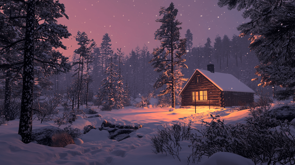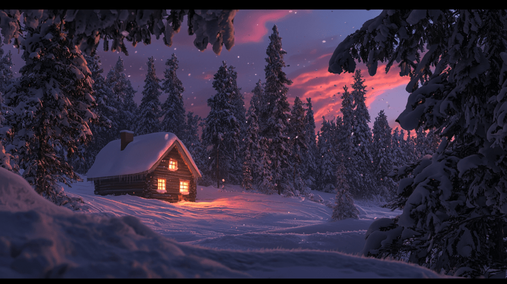 Julia’s cabin sat at the edge of a dense forest, its red walls dusted with snow and icicles hanging from the roof. As they approached, the faint glow of light from the windows promised warmth and comfort.