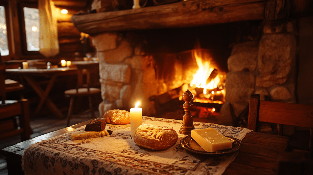 壁爐的火焰輕輕跳動,一顆燒紅的木炭迸發出小火花,像是在提醒他們,在這片土地上,取暖不只是物質需求,更是一種文化傳承和人與人之間的連結。