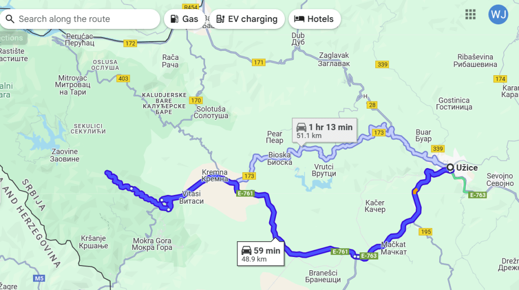 Julia: Yes, we could drive there today. It’s about an hour and a half from here, through Užice.