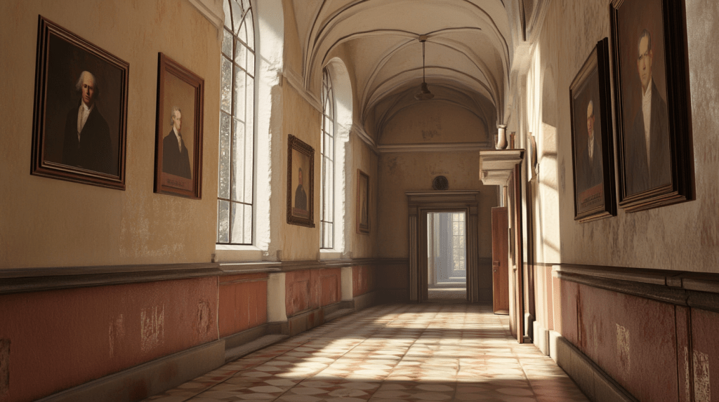 Emma walked through the entrance of the history department, housed in one of the university’s oldest buildings. The grand archways and high windows gave the space an air of solemnity, as though the walls themselves had absorbed the countless discussions and debates that had taken place over the centuries. Along the corridors, framed portraits of historical figures and maps depicting Lithuania’s evolving borders adorned the walls. From medieval noble families to Soviet-era street scenes, each artifact whispered a piece of the city’s long and complex past.