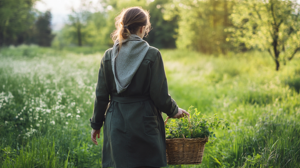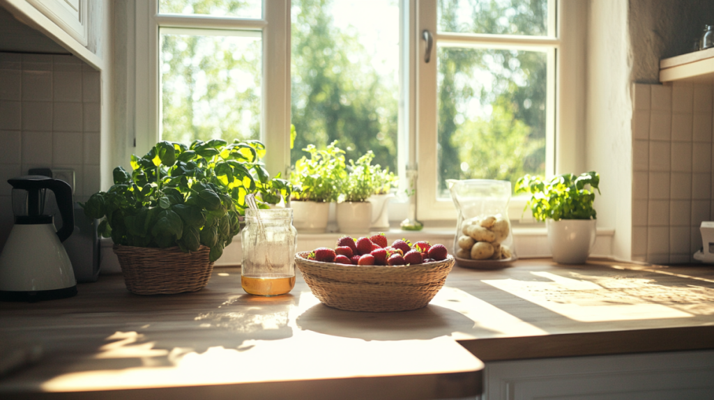 On a breezy Friday morning, she stood by her kitchen window, tying back her hair with a linen scarf. A bowl of strawberries and young mint sat on the counter, freshly picked from the garden. Lemon balm leaves had been steeping in warm water for tea. A basket of small, golden-skinned new potatoes waited nearby, still dusted with soil.