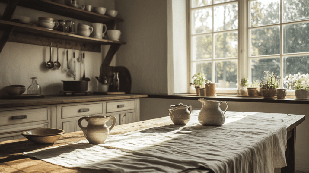 In the evening, she lightly cleaned the kitchen, set out a ceramic teapot, and laid a fresh linen cloth on the old wooden table. She didn’t over-prepare. Just enough to welcome, just enough to begin.