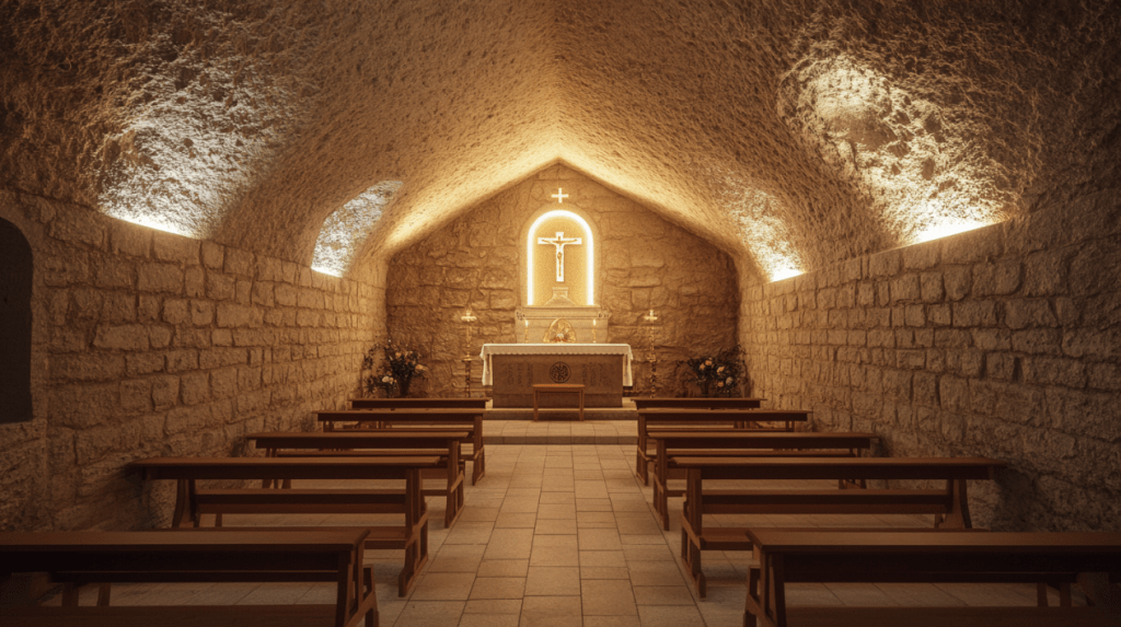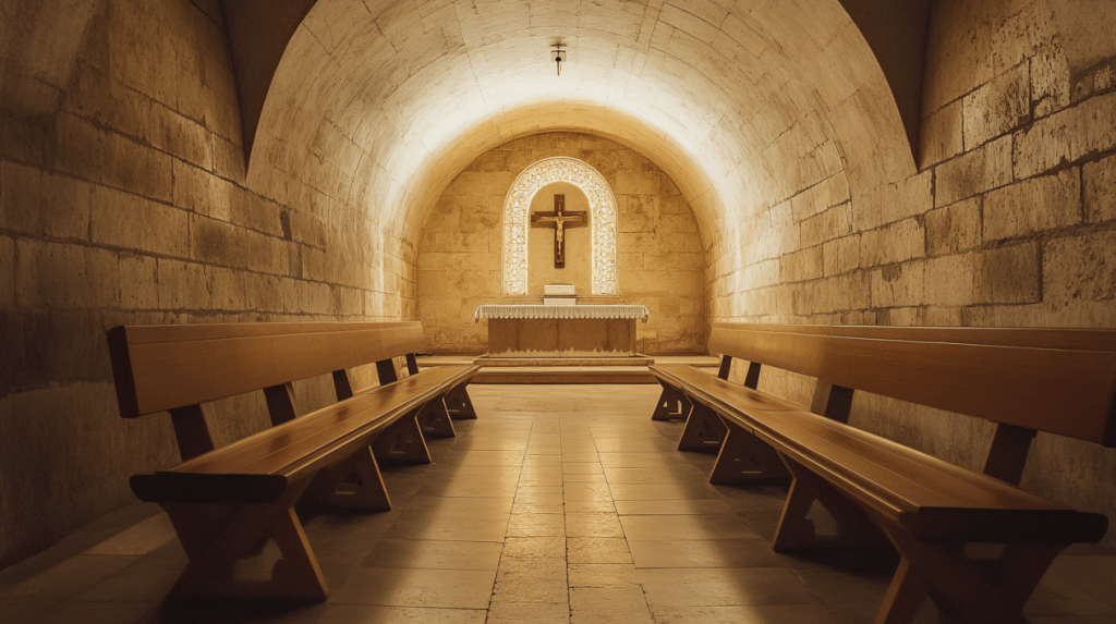 這地方,曾經是秘密的庇護所,是在信仰被視為禁忌的年代裡,一口不說出口的深呼吸。她想起自己小時候曾牽著祖母的手來這裡,口袋裡藏著一小片裸麥麵包,腳步小心翼翼地落在石地上。