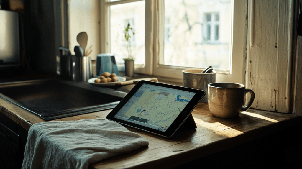 Emma had just finished wiping down the kitchen counter when Julia walked in, holding an iPad displaying the map.