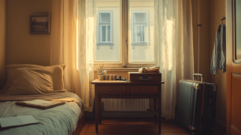 Ben stayed in a university guesthouse, a few tram stops from the main campus. His small room was quiet, lit by a single desk lamp and the glow of a laptop screen. A duffel bag sat open on the bed, filled with basics—books, a raincoat, a reliable water bottle. Nothing excessive.