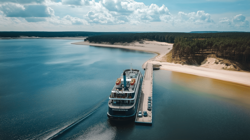 The ferry hummed steadily under their feet, cutting across the pale blue water. Ahead, the green line of the Curonian Spit grew sharper.