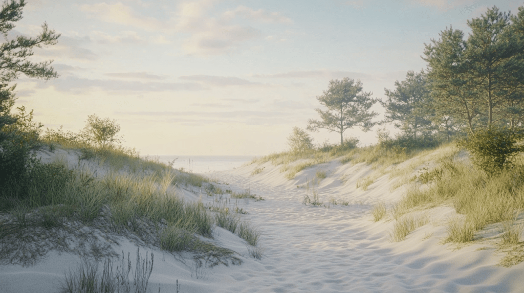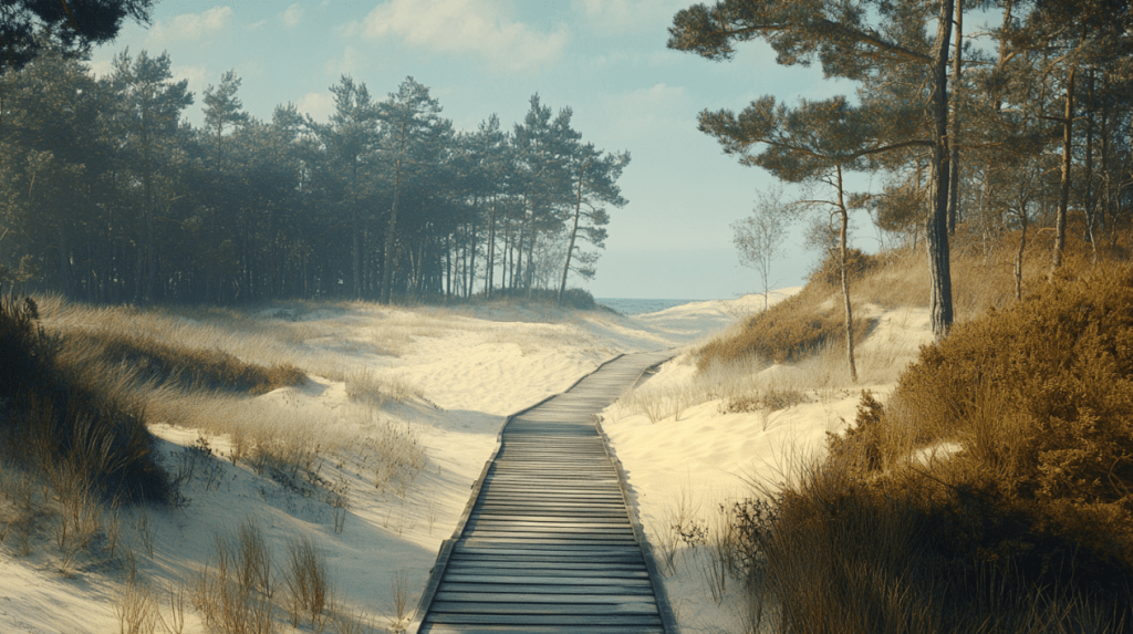 “Well,” Tomas began, reaching for a boiled egg, “we’ll pass by the Dead Dunes — shifting sand hills that have swallowed entire villages in the past. Then we can stop at the Parnidis Dune, near Nida. There’s a huge sundial there, and from the top, you get a clear view of both the lagoon and the open sea.”
