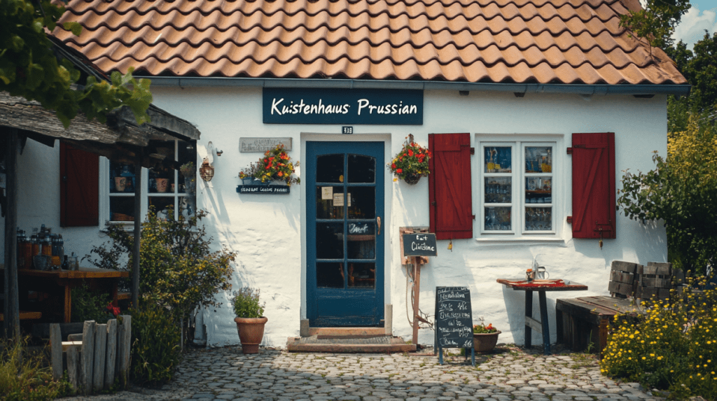 They picked a small restaurant near the harbor — white wooden walls, red shutters, a carved sign that read Küstenhaus. The subtitle said: East Prussian Cuisine.