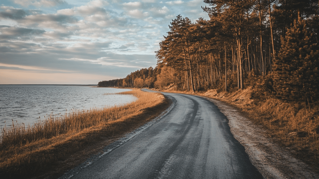Tomas drove slowly, following the narrow ribbon of road winding along the Curonian Spit. On one side: glimpses of the lagoon, calm and soft in the afternoon light. On the other: the darker roll of Baltic waves through gaps in the trees.