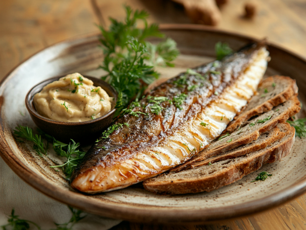 煙燻梭魚,配辣根醬跟黑麥麵包