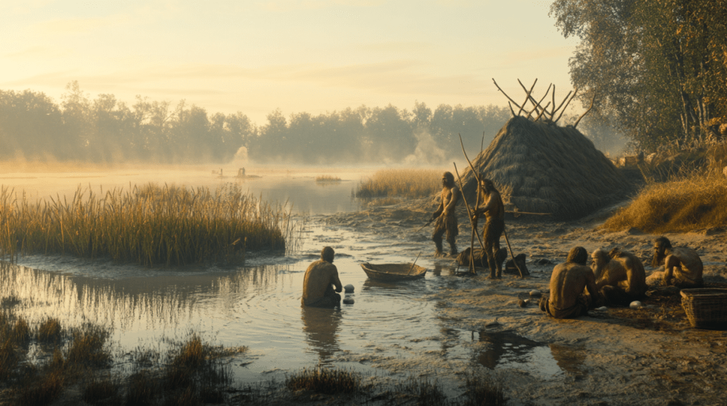 Mesolithic Activity Scene (AI-Generated Imaginary Image)