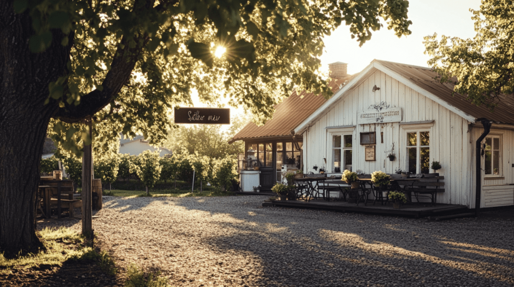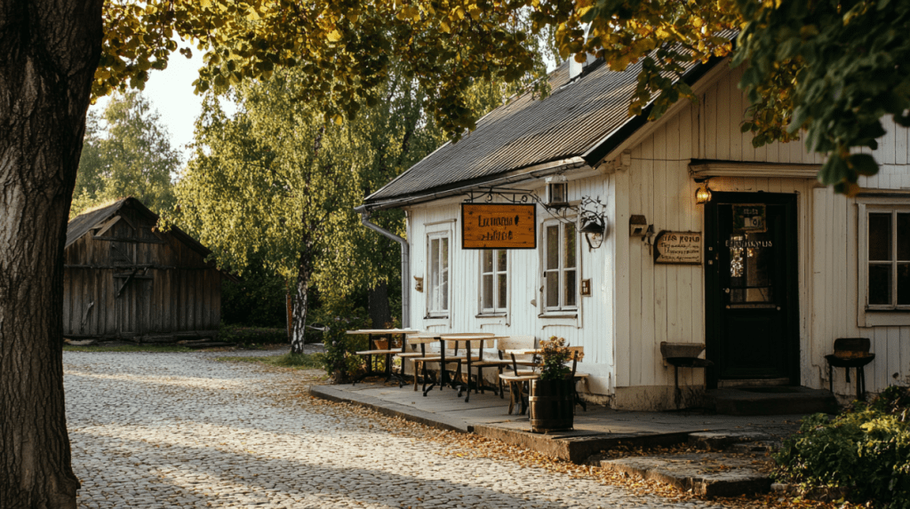 By the time they stopped at a roadside diner near Raseiniai, the low sky had cleared. The place was modest—a wooden house with whitewashed walls, a hand-painted sign swinging from a rusted bracket, and a cluster of linden trees shading the gravel lot.