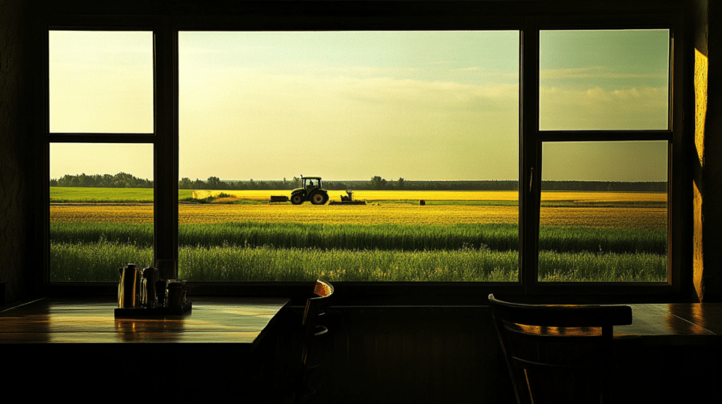 Inside, the aroma of fried eggs, sour rye bread, and coffee welcomed them. They sat near the window, watching a tractor move slowly across a distant field.