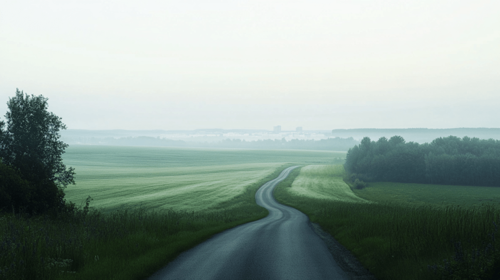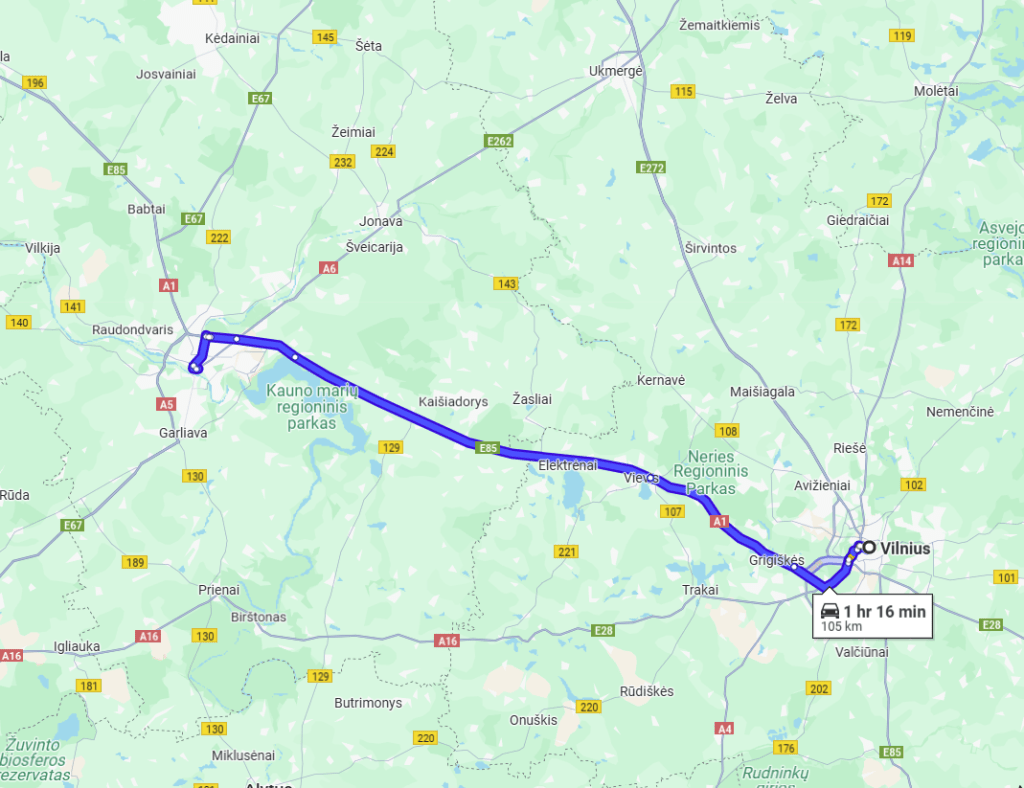 As the road signs indicated they were nearing Kaunas, the landscape slowly shifted—more houses appeared along the roadside, and small industrial buildings peeked out between patches of green.