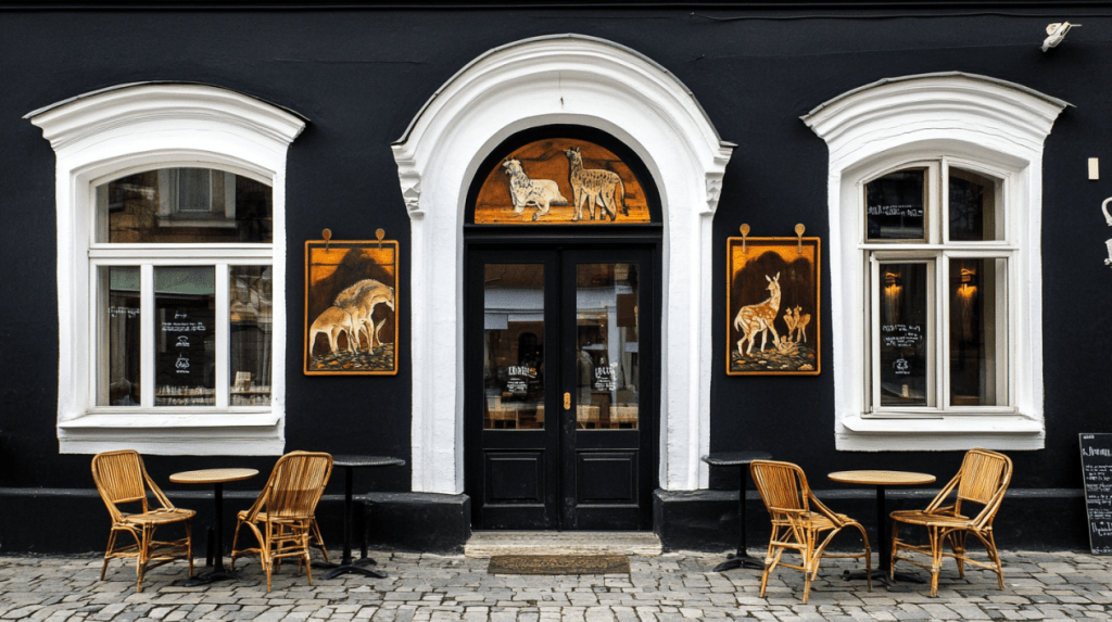 門口掛著低調的招牌,寫著「Laiko Stotelė」——立陶宛語意為「時間的停靠點」,用的是 1930 年代風格的字體。