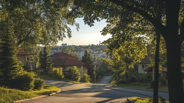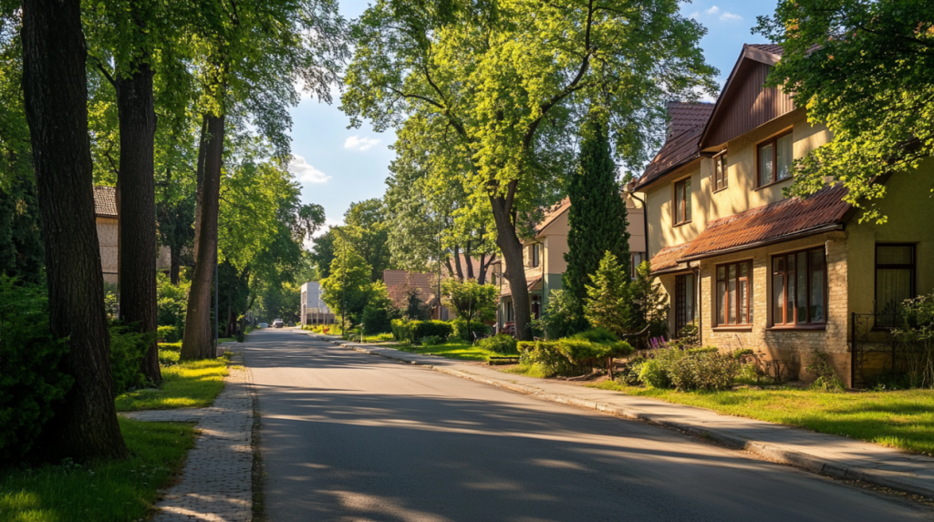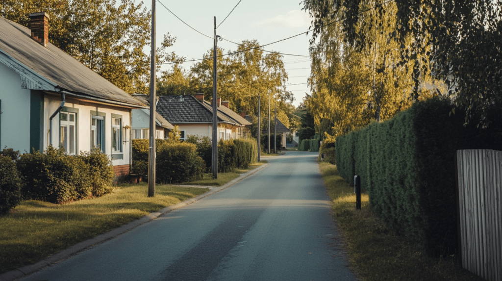 The city, so flat just moments ago, began to shift. A quiet incline opened ahead, lined with interwar houses—each with a private yard, a tall fence, and a certain reserve in its design.