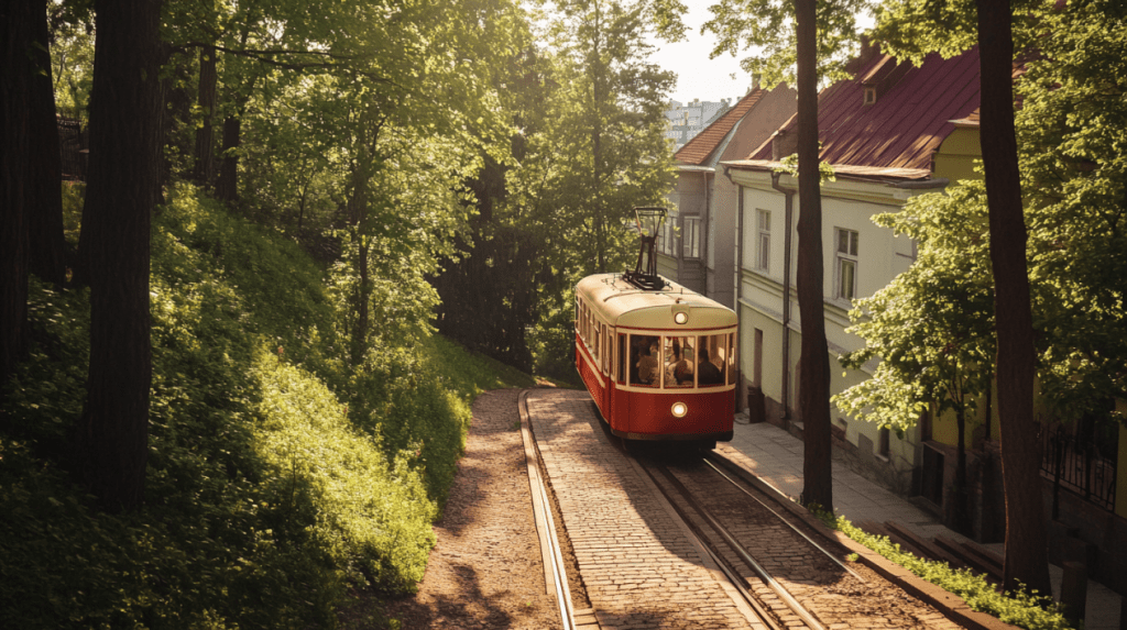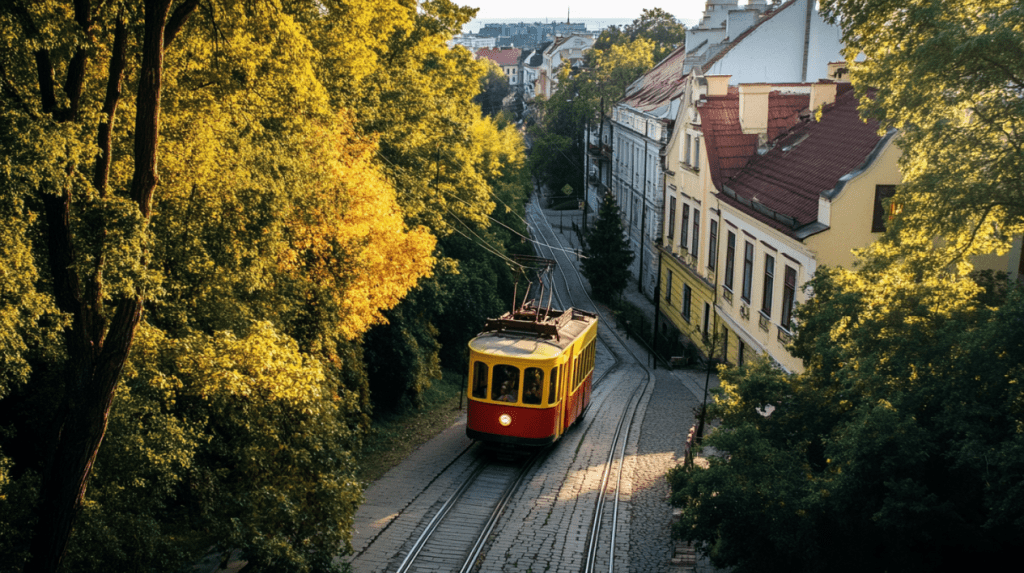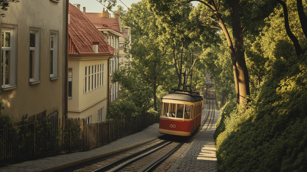 The breeze moved softly through the trees. Below them, the city lay still, like a map waiting to be read—and the tracks of the funicular traced a deliberate diagonal line across it.
