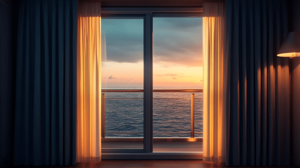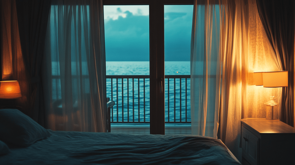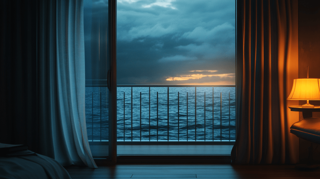 Back in their cabin, they slid open the glass doors and stepped onto their private balcony.