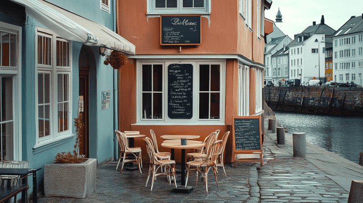 Inside, the air smelled of roasted beans and cinnamon. The counter displayed slices of brunost cheese, small rolls, and plates of waffles topped with lingonberry jam.
