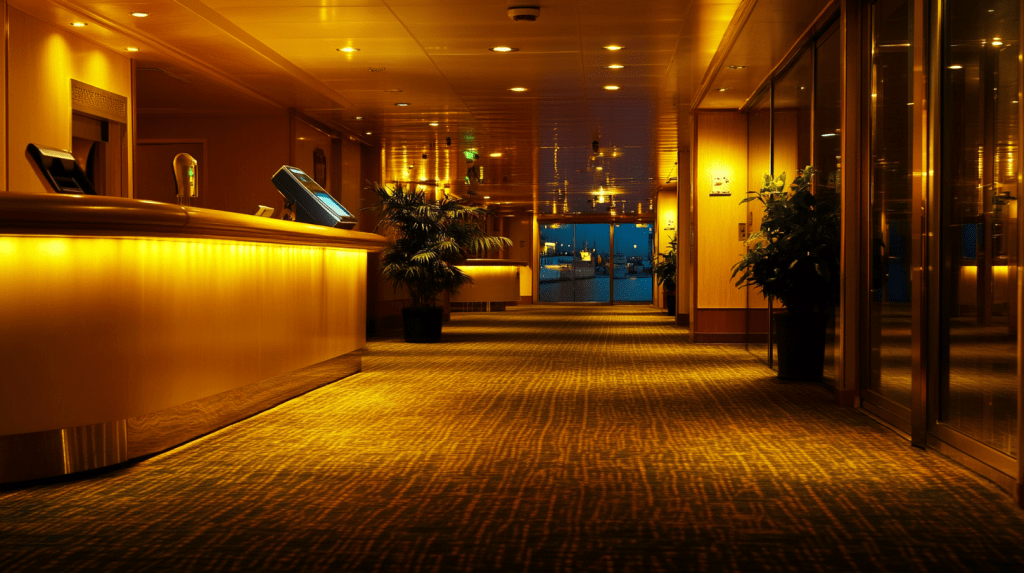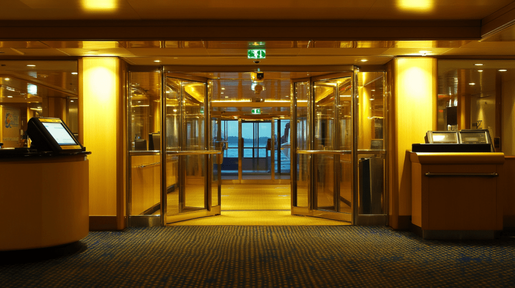 Inside the lobby, the mingled scents of coffee and seawater lingered, as crew members scanned boarding cards with practiced ease.